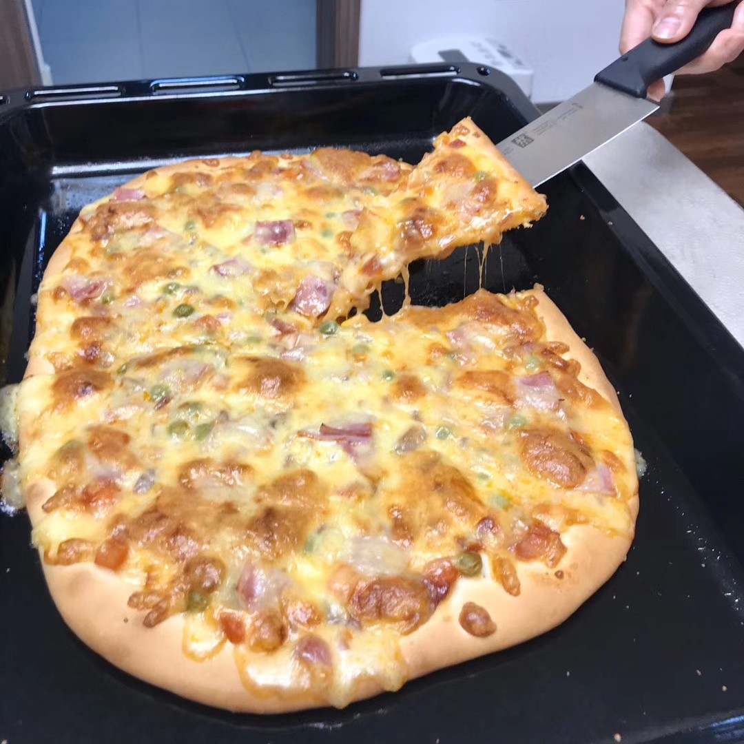 披萨是一种发源于意大利的食品,在全球颇受欢迎。比萨饼的通常做法是用发酵的圆面饼上面覆盖番茄酱、奶酪以及其他配料,并由烤炉烤制而成。