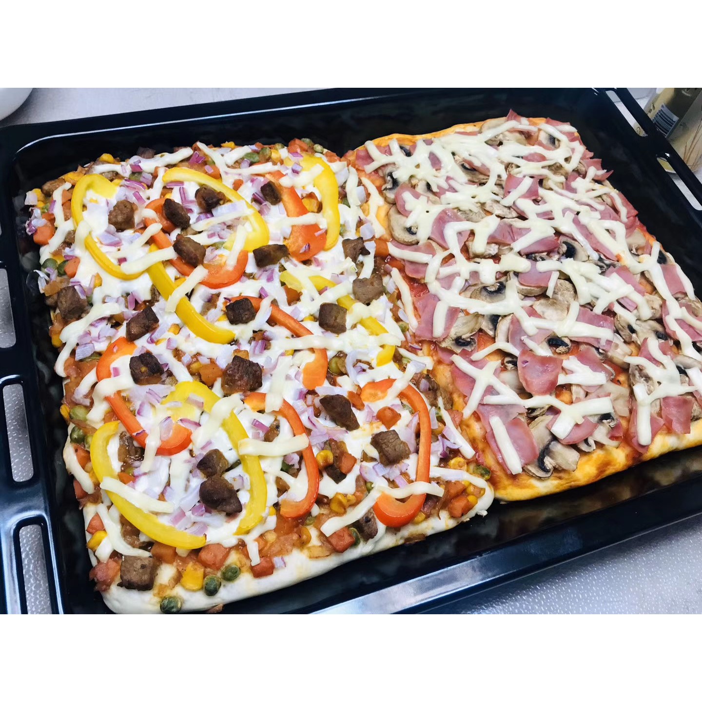 披萨的配料丰富多样,可以根据个人口味添加各种蔬菜、肉类和香料。
